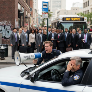 一位新上任警官和他的老练搭档接到任务,去疏散一群在街角无所事事、游手好闲的人。他们发现街角果然站着一大群人。新警官想要表现一下,于是摇下车窗,严肃地喊道:“别在这儿待着了,散了散了!”人群纹丝不动。新警官感觉丢了面子,于是拿出扩音器大吼一声:“说你们呢!赶紧离开这个街角!立刻!马上!”人们交换了一下困惑的眼神,虽然一脸茫然,但还是开始陆陆续续地走开了。新警官得意洋洋地转向搭档,满脸自豪地问:“嘿,老兄,你看我干得怎么样?”老警官忍不住笑出声来,拍拍他的肩膀说:“干得真漂亮!尤其是考虑到……这儿其实是个公交站。”